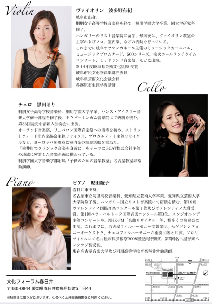 ピアノトリオのコンサートはいかがですか?前半はクラシックの名曲の数々、後半はブラームスのピアノトリオをお届けします。トーク付きでお聴き頂くコンサートです。お時間、ご興味ございましたら、ぜひご一緒に名曲をお楽しみ下さい。チケットは⬇︎ご予約ボタンからお申込み下さい。ご来場心よりお待ち申し上げております。